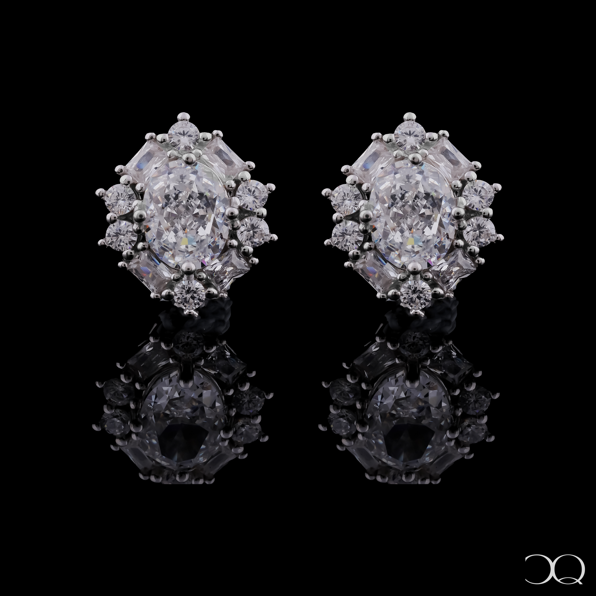 The Aurora Oval Stud Earrings – Silver Crystal Brilliance radiate sophistication and timeless glamour. Crafted in polished sterling silver, each earring features a stunning oval-cut crystal surrounded by a halo of round and baguette-cut stones that reflect light beautifully. Designed to add a touch of luxury, they’re perfect for both everyday elegance and evening sophistication.