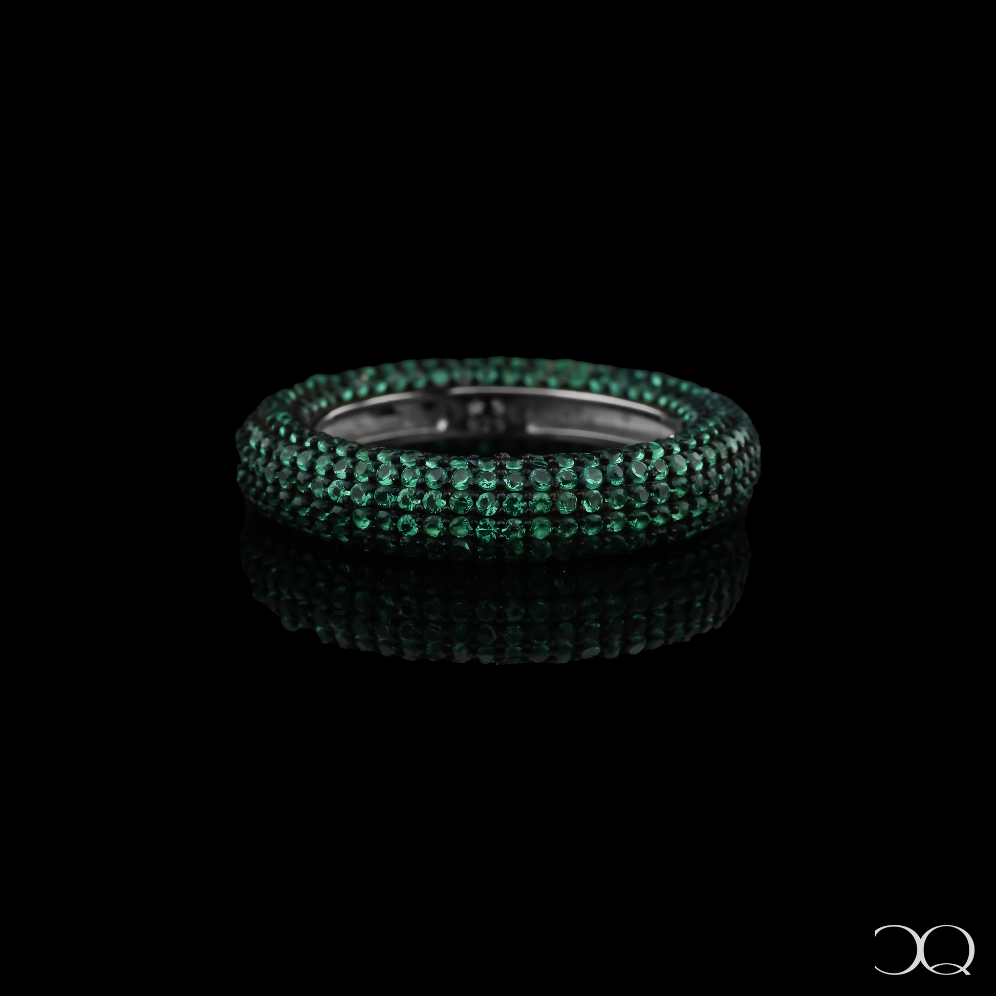 Unveil timeless luxury with the Emerald Glow Pavé Eternity Ring, a masterpiece of elegance and color. Handcrafted in premium 925 sterling silver, it features rows of finely set emerald-green gemstones that shimmer with captivating brilliance. The smooth, comfort-fit design ensures effortless wear, making it a perfect statement piece for both everyday sophistication and special occasions.