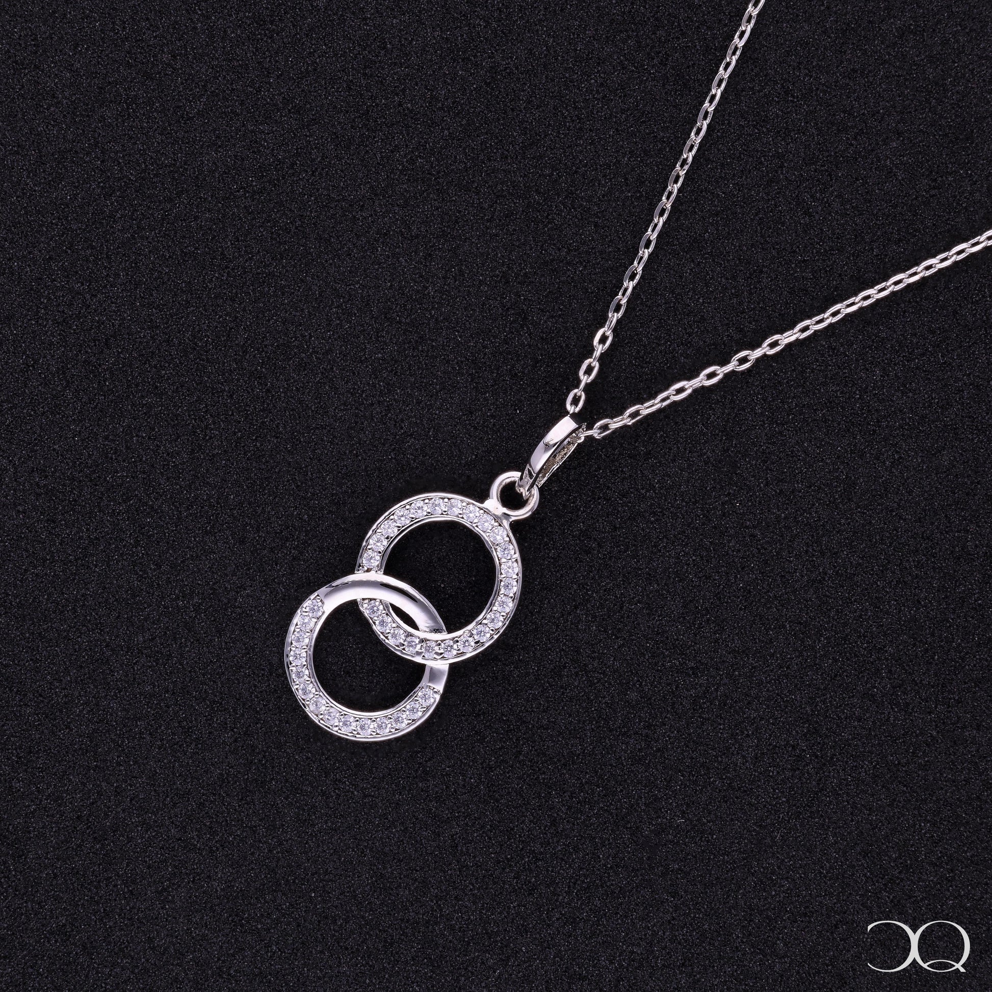 Celebrate connection, unity, and everlasting elegance with the Interlinked Circles Pendant. Featuring two graceful, pavé-set circles intertwined in perfect harmony, this piece symbolizes infinite love and unbreakable bonds. Crafted in luminous 925 sterling silver, it offers a delicate sparkle that flatters every neckline, making it a timeless addition to your jewellery collection or a meaningful gift for someone dear.