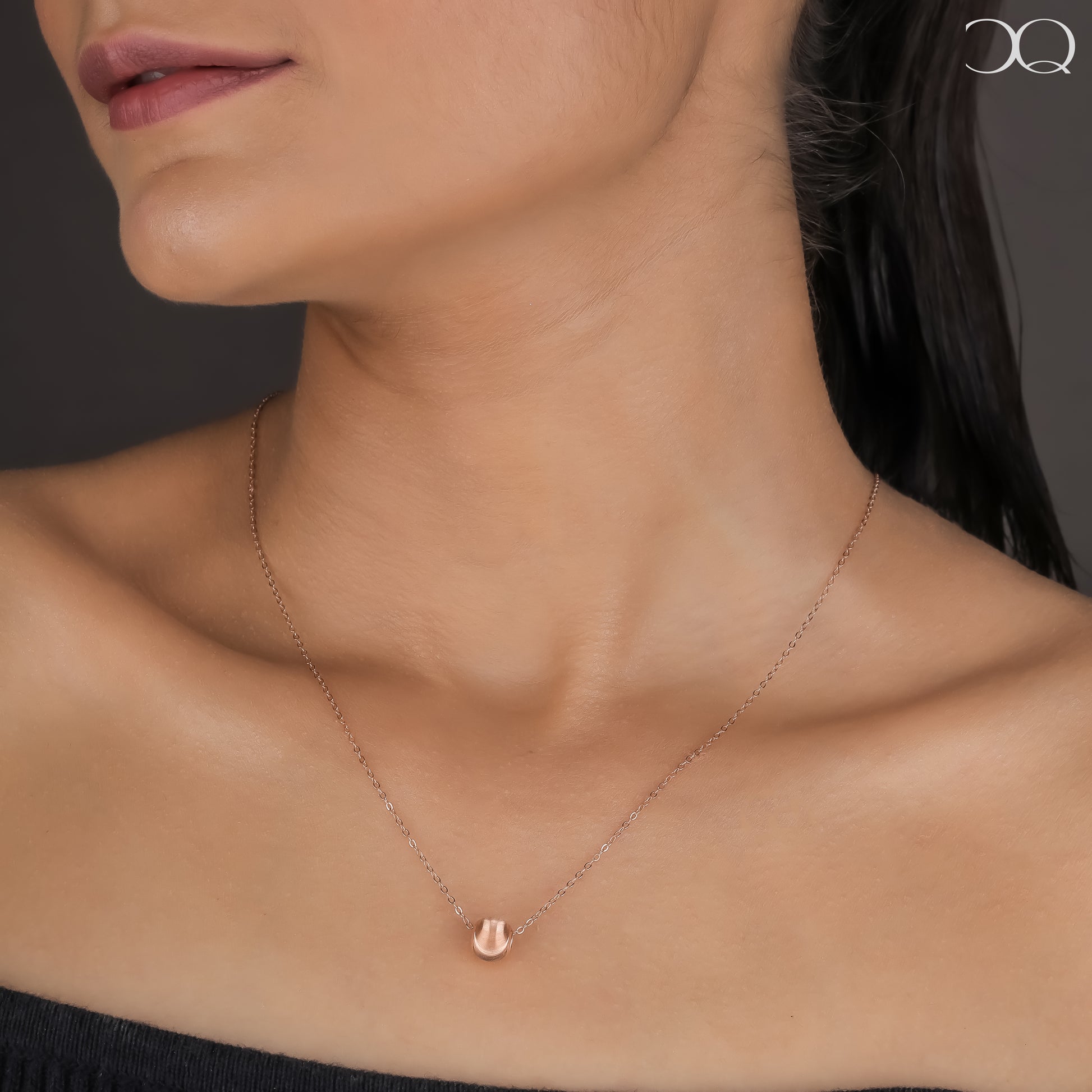 The Ethereal Glow Necklace – Rose Gold Minimal Charm redefines modern elegance with its single satin-finish bead suspended on a delicate rose gold chain. Designed for those who adore simplicity with a touch of luxury, this piece effortlessly complements every mood and occasion.