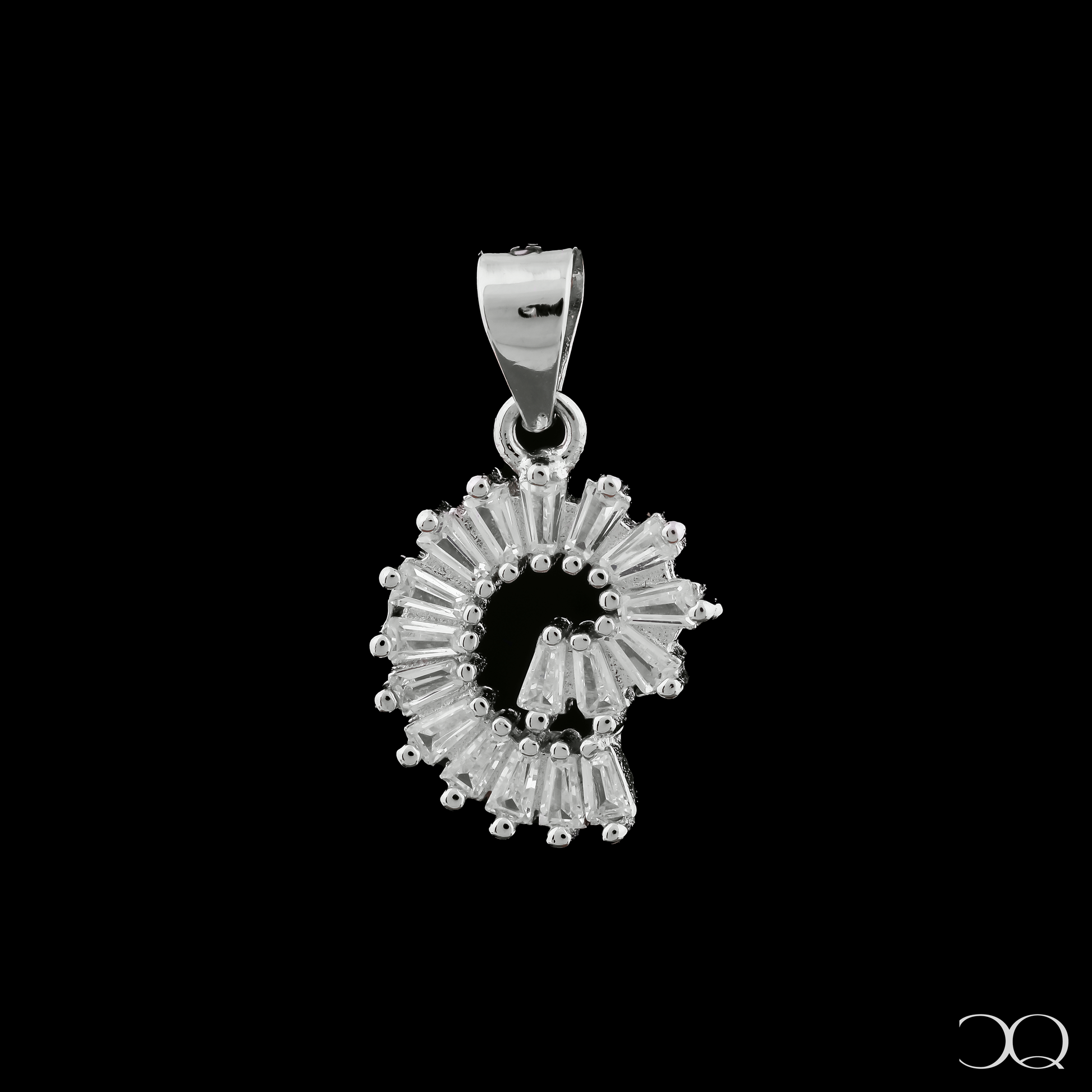 The Luna Spiral Pendant – Modern Silver Brilliance is a modern expression of grace and motion. Crafted in sterling silver with baguette-cut stones arranged in a radiant swirl, it exudes contemporary charm and timeless elegance — perfect for the modern woman.