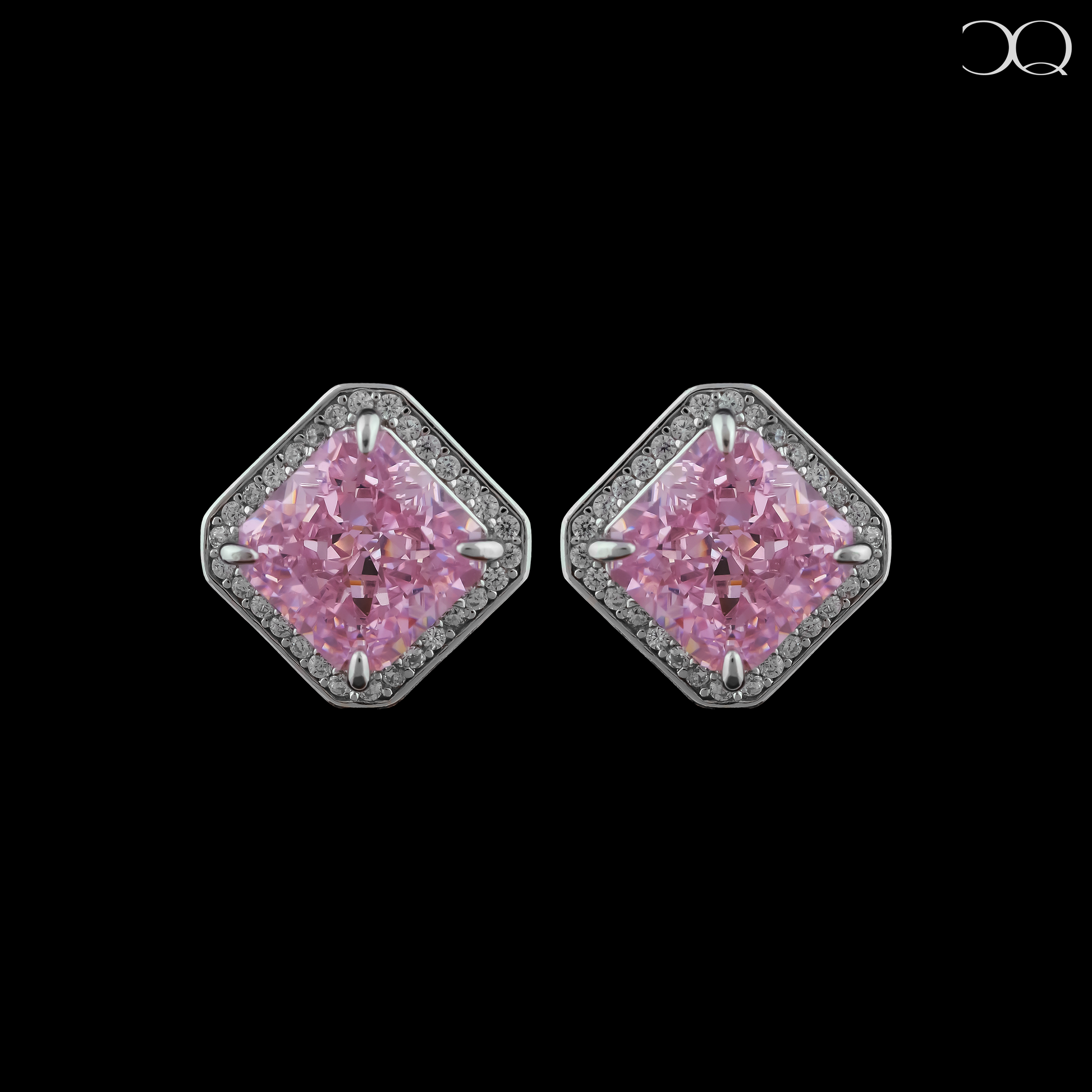 The Rosaline Radiance Stud Earrings – Pink Cushion-Cut Elegance exude timeless beauty and soft femininity. Set in polished sterling silver, each earring features a dazzling pink cushion-cut gemstone framed by a halo of fine white stones. Perfectly balanced between charm and sophistication, these studs add a refined glow to any ensemble.