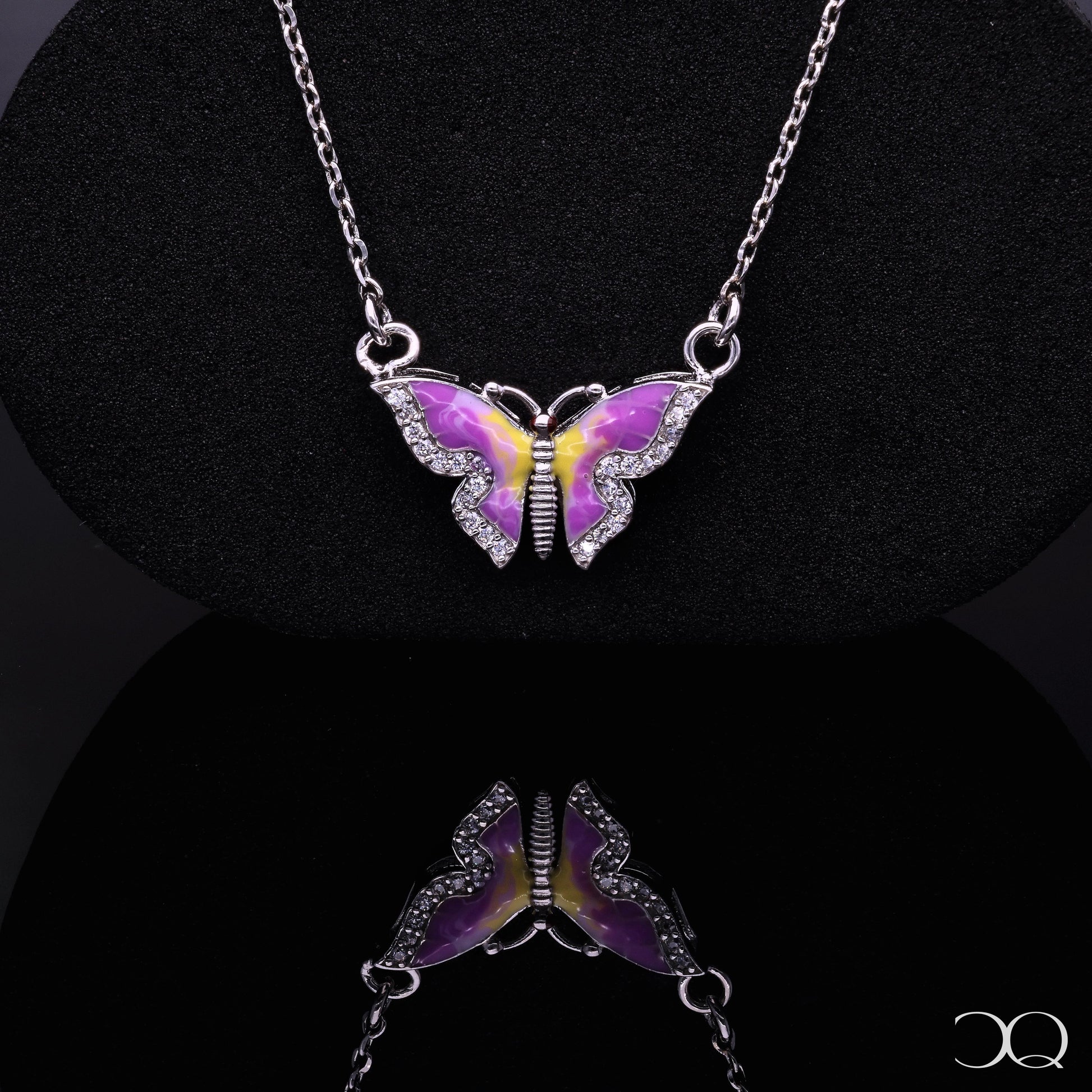 - Necklace Design: Soft pink and yellow enamel butterfly