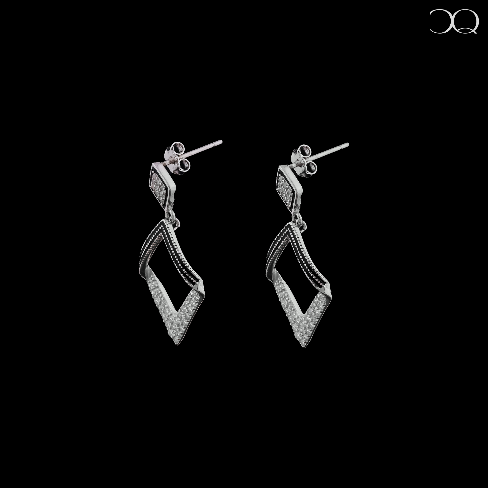 The Vetra Diamond Drop Earrings – Silver Geometric Elegance embody modern sophistication with a timeless sparkle. Crafted in polished sterling silver, these geometric drops feature pavé-set crystals framed by fine detailing, creating a perfect balance of boldness and grace. Designed to catch the light effortlessly, they elevate any look with refined glamour.